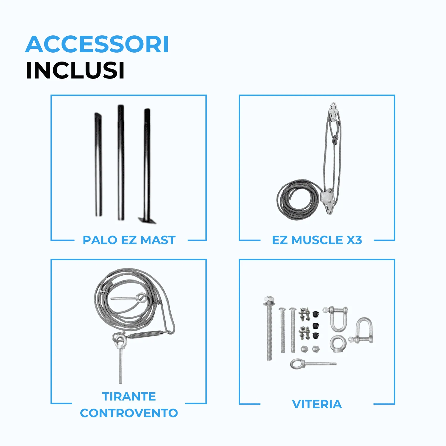 | Materiale incluso | EZ Muscle x3 Pole, EZ Tirante controvento, Piastra per attacco al solaio del balcone |