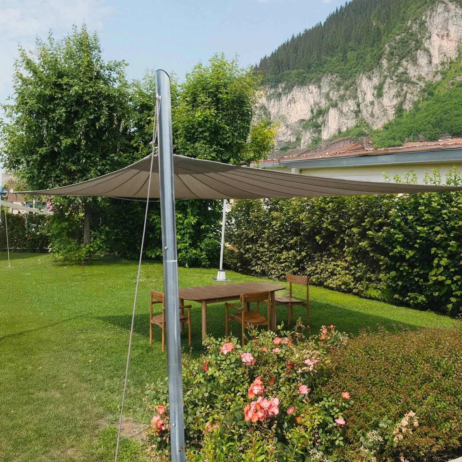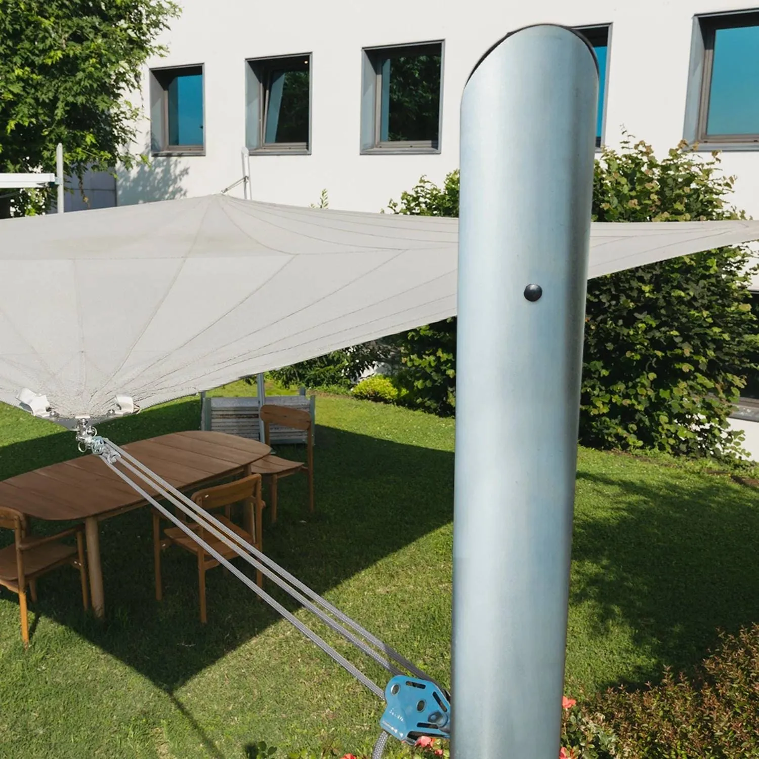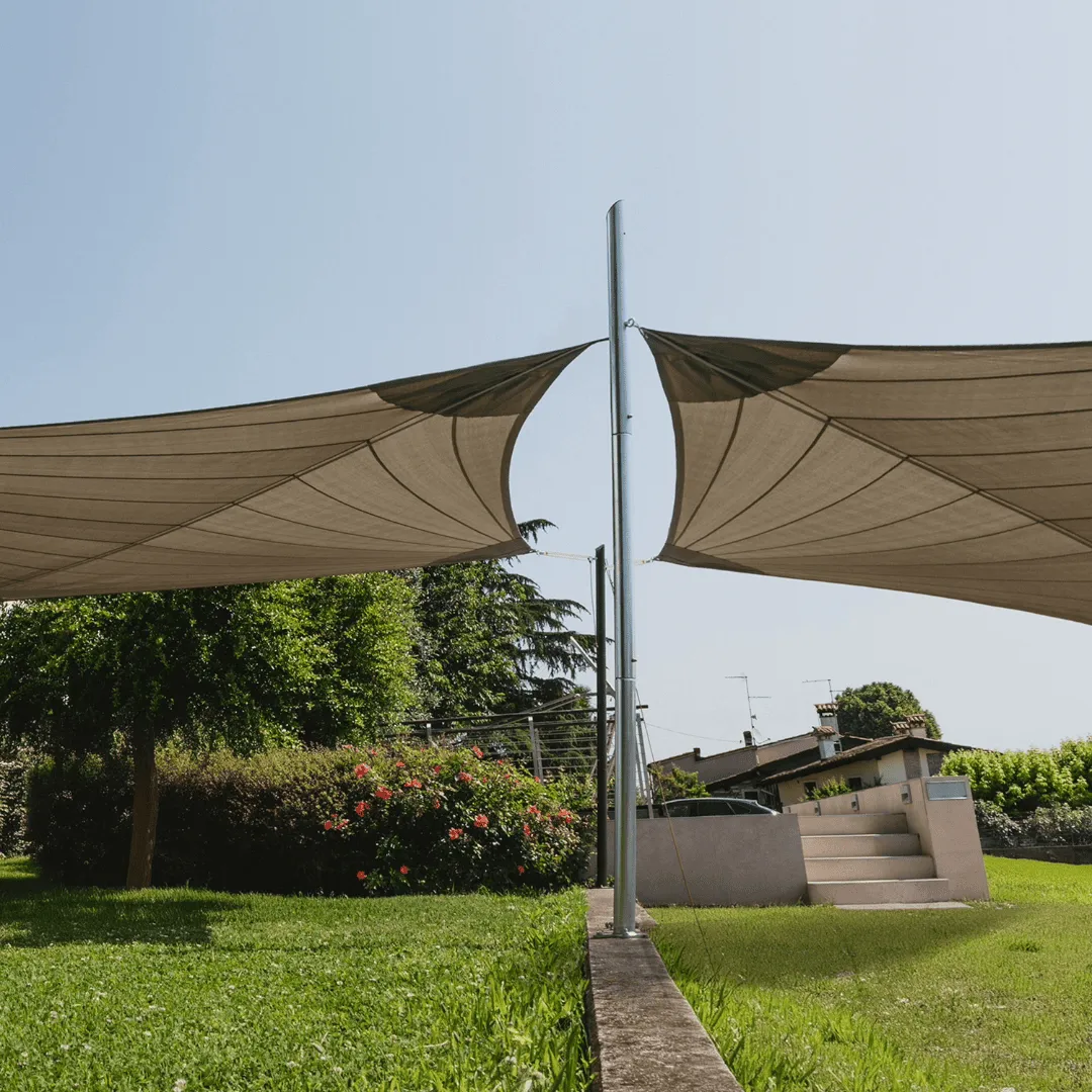 Gestire l’ombra durante la giornata diventa semplice grazie ai 5 punti di ancoraggio che permettono di posizionare le vele all’altezza che desideri. Puoi ancorare fino a 5 vele sullo stesso palo, regolando l’ombreggiatura in base all’orario e alla stagione.