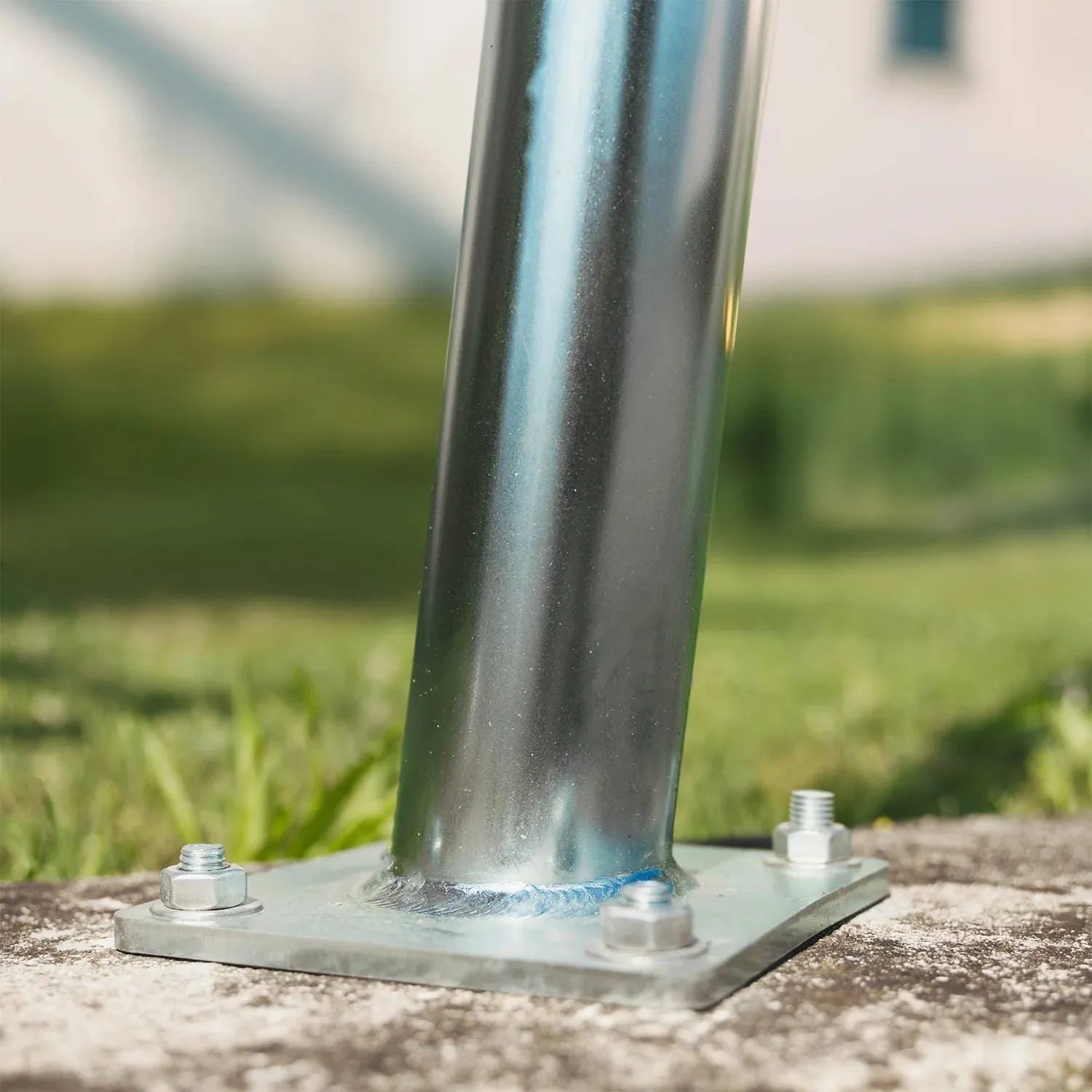 Il palo EZ Mast è disponibile in tre varianti di ancoraggio, studiate per adattarsi a superfici diverse, garantendo stabilità e flessibilità di installazione in base al tipo di spazio disponibile.