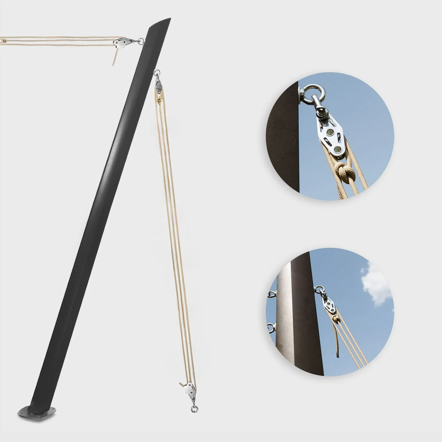 È ideale per installazioni con vele oltre 20 m², anche in zone molto ventose. Si fissa sul lato opposto alla vela, nel punto esatto in cui questa è ancorata al palo.