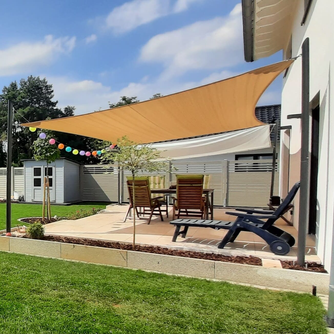 • 6 punti di ancoraggio indipendenti: 4 anteriori e 2 posteriori, per installare fino a 6 vele o regolare le altezze in modo autonomo.