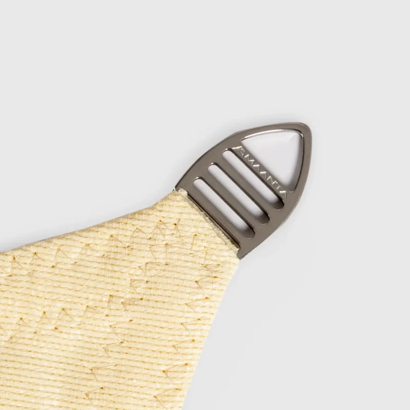 Piastre di collegamento situate sugli angoli della vela, realizzate interamente in acciaio inox AISI 316. Consentono di tendere correttamente la fettuccia diagonale e garantiscono elevata resistenza alla corrosione, anche in ambienti marini.