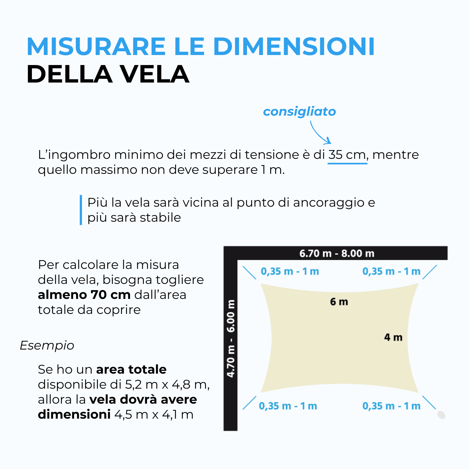 In condizioni meteo particolarmente intense è sempre consigliabile valutare la temporanea rimozione della vela per preservare la durata nel tempo.